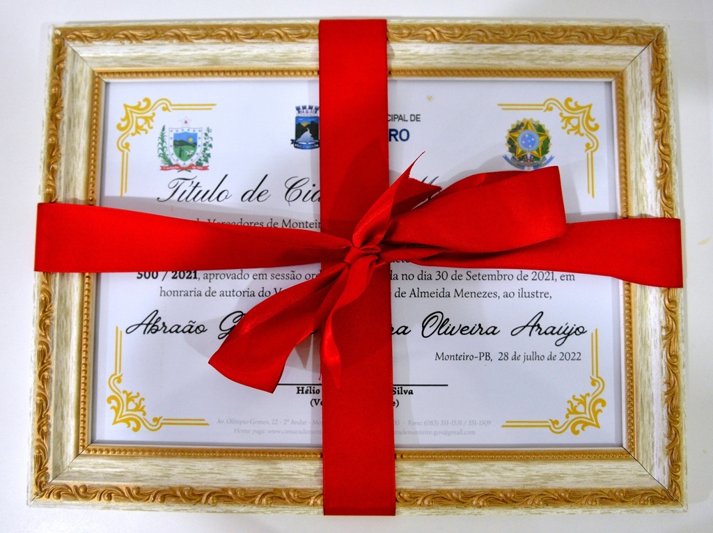Aconteceu na noite da última quinta-feira (28), a solenidade de entrega do Título de Cidadão Monteirense, ao jovem historiador e poeta Abraão Anastácio.